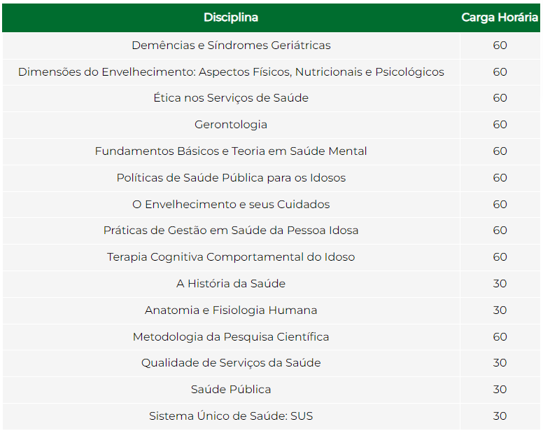 O curso de pós-graduação EAD em SAÚDE MENTAL E GERONTOLOGIA ofertado pela FaculdadeFAVENI tem como objetivo estabelecer e desenvolver uma modalidade de formação e qualificação de profissionais vinculada a realidades locais, no sentido de produzir o necessário e esperado impacto na qualidade da saúde do idoso e de sua família. Esse profissional, integrado à equipe de saúde, será capaz de atuar de forma autônoma, responsabilizando-se pela assistência ao idoso nos mais diferentes contextos (existentes ou necessários), atendendo às suas necessidades físicas, emocionais e socioculturais. Além disso, participará ativamente das transformações do quadro epidemiológico da saúde do idoso que ocorrem no país e capacitar profissionais da área de saúde e áreas afins quanto o atendimento, planejamento e gerenciamento na atenção em saúde mental, capacitando-os nos processos de transformação da assistência psiquiátrica brasileira através das políticas públicas.
